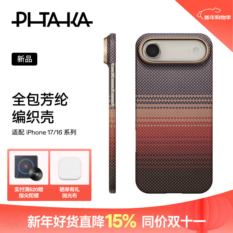 自营PITAKA适用苹果iPhoneAir手机壳MagSafe磁吸凯夫拉芳纶碳纤维纹高级感超薄编织奢华保护套男女款 日落