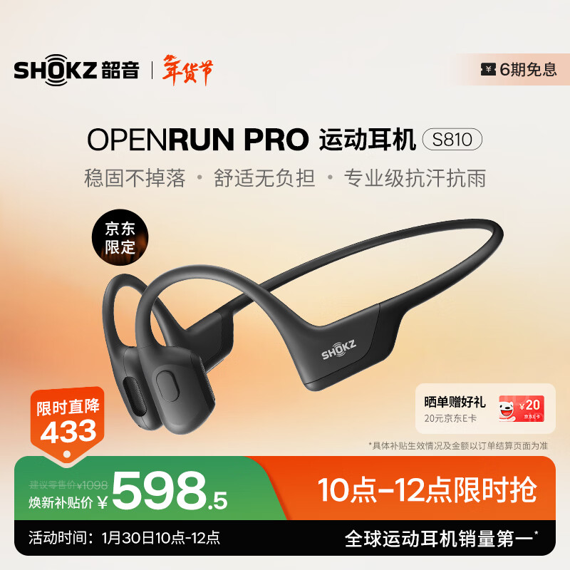 自营韶音(SHOKZ)OpenRun Pro S810骨传导蓝牙耳机无线开放式不入耳式运动耳机跑步骑行 骑士黑
