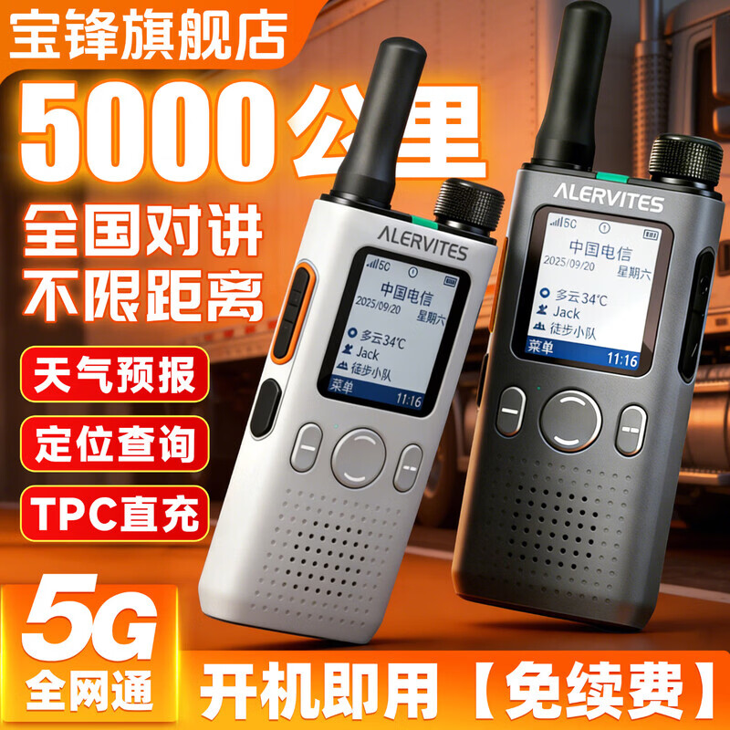 自营宝锋(BAOFENG)POC-AT1公网对讲机5000公里5G全网通远距离全国对讲酒店餐饮工地办公户外自驾游手台