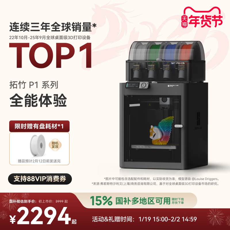 百亿补贴拓竹P1系列 3D打印机 桌面家用FDM 全自动调平 大尺寸多色高速 【大陆版】