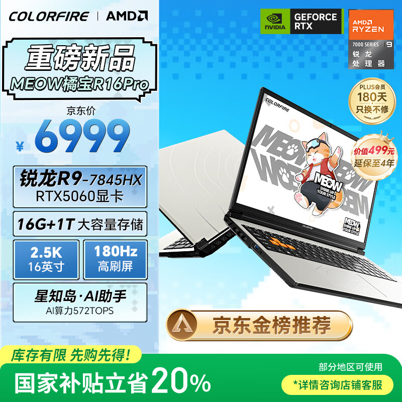 自营COLORFIREMEOW 橘宝R16 Pro 七彩虹16英寸锐龙R9游戏笔记本电脑 (R9-7845HX 16G 1T RTX5060 2.5K 180Hz)