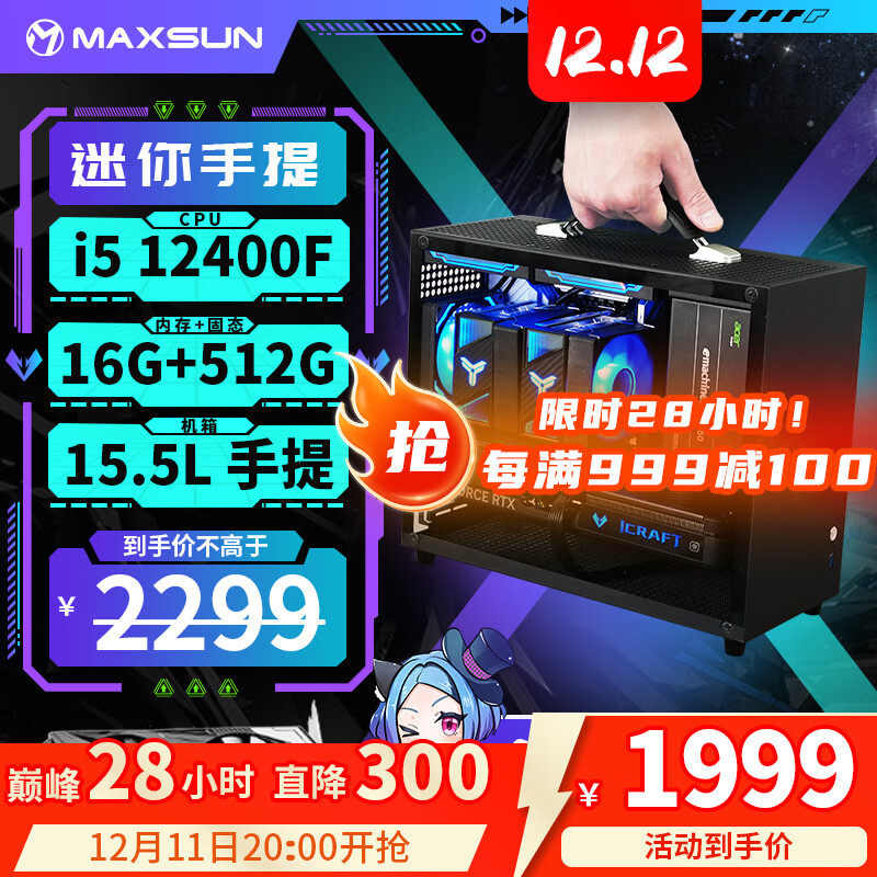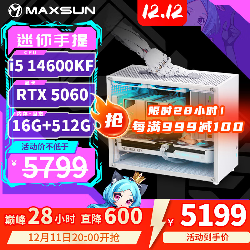旗舰店铭瑄(MAXSUN)14600KF/245KF/12600KF/RTX5070/RTX5060TI/B580迷你台式组装电脑主机电竞游戏直播DIY整机ULTRA 配置六丨14600KF丨RTX5060