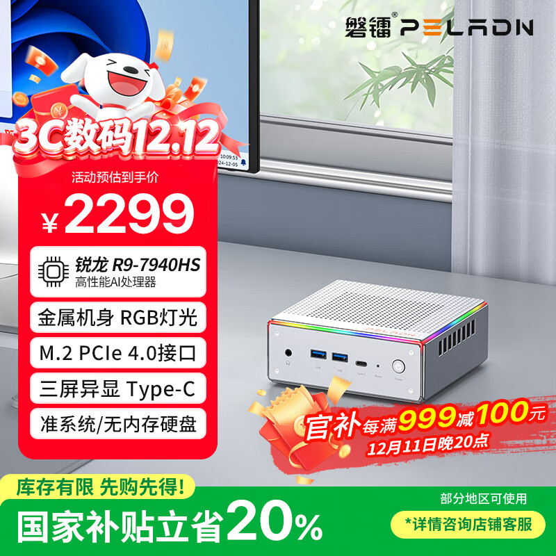 自营磐镭HA-4 mini主机 锐龙R9 7940HS迷你主机 RGB灯光 准系统 游戏办公设计高性能台式机电脑