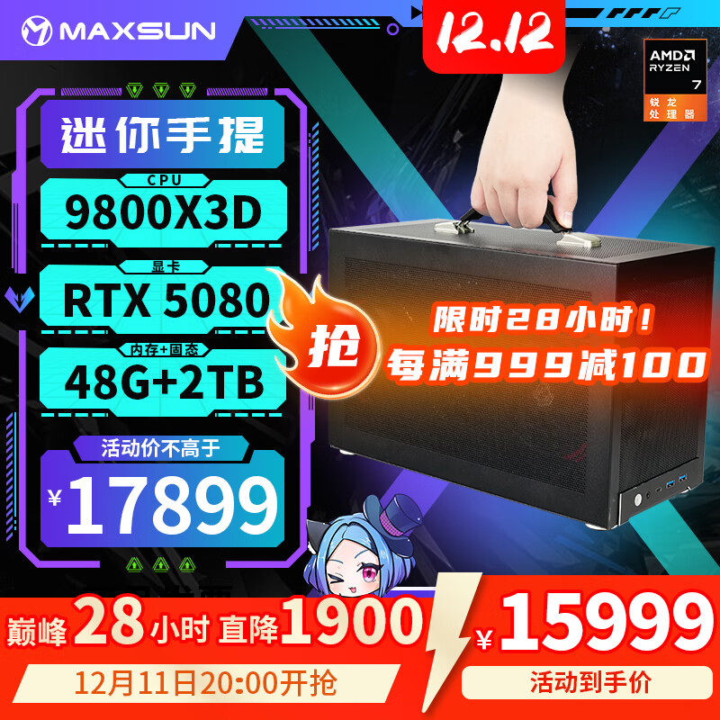 旗舰店铭瑄AMD 9800X3D/RTX5080/RTX5070/迷你ITX台式组装电脑主机电竞游戏设计渲染DIY整机B760BKB迷你主机 配置四丨9800X3D丨RTX5080