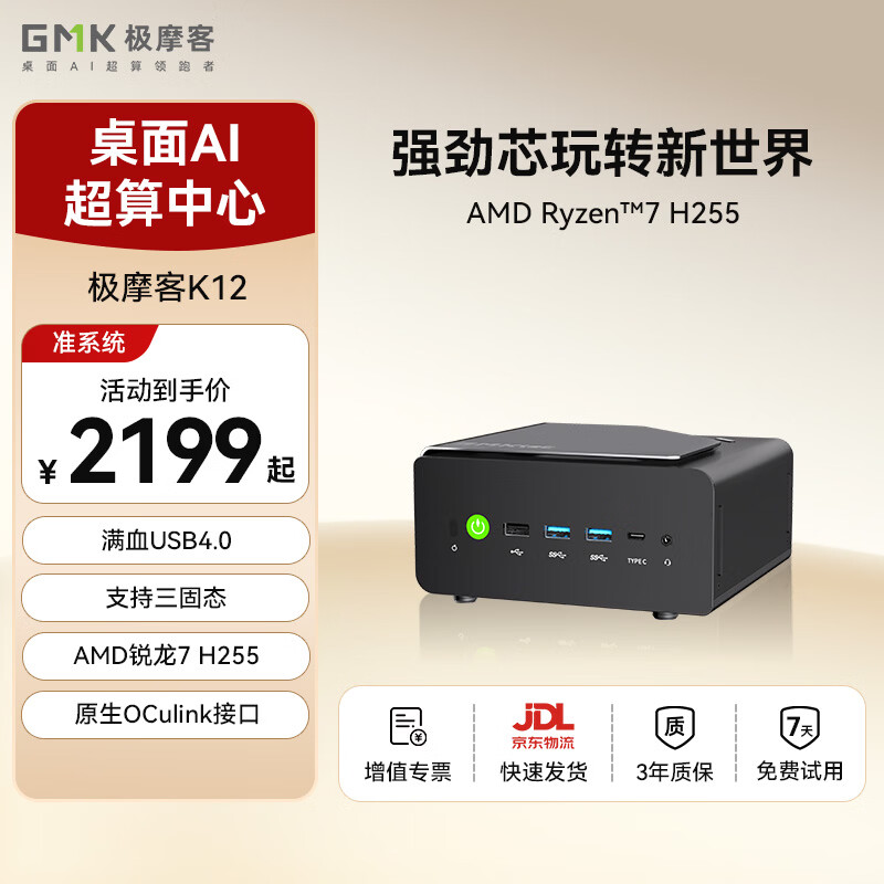 自营极摩客【GMK】极摩客K12 迷你主机电脑锐龙7 H255 65W高性能游戏办公设计mini小主机