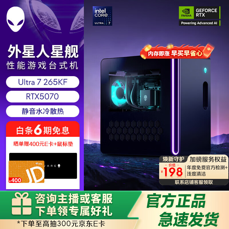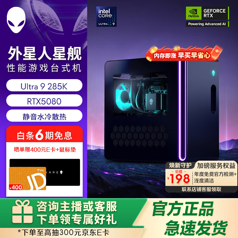 旗舰店外星人【旗舰水冷】星舰R17游戏台式电脑 游戏台机 主机整机Ultra7/9 RTX5060/5070/5080显卡 1983:Ultra9/32G/1T/5080