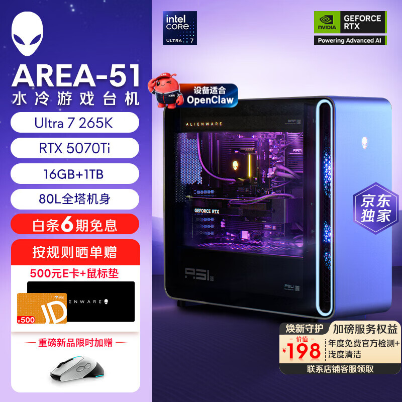 旗舰店外星人【旗舰水冷】Area-51高端游戏台式电脑游戏台机主机整机 Ultra9至高RTX5080显卡 32G+1T电竞三角洲 1983K:U9/32G/1T/RTX5080