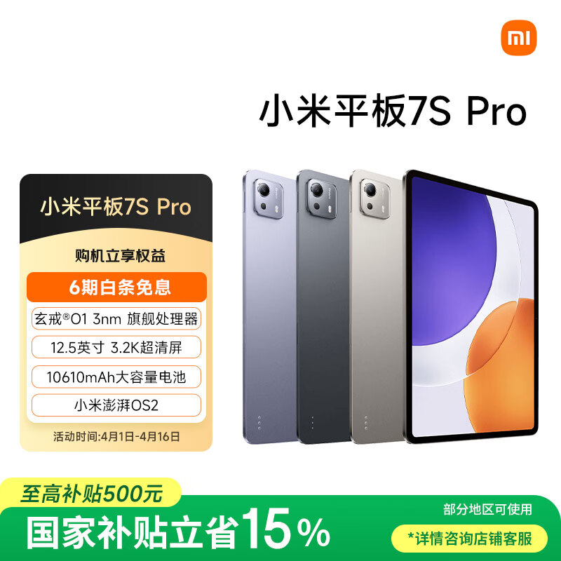 自营小米平板7S Pro【国家补贴】12.5英寸 3.2K 超清屏 玄戒® O1 澎湃OS2 8+256G 钛金属色 平板电脑