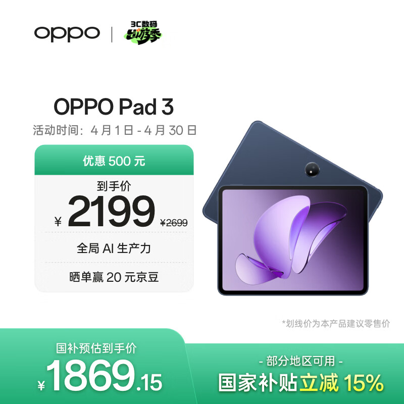 自营OPPO Pad 3 11.61英寸平板电脑 12GB+256GB 夜幕蓝 办公游戏学习娱乐一加平板