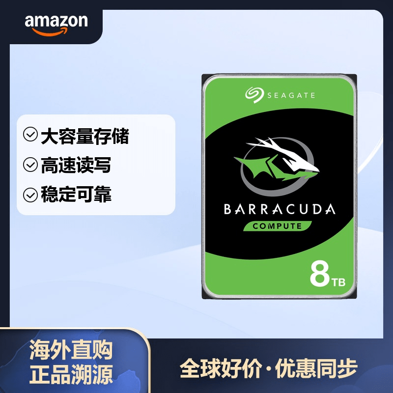 旗舰店希捷(SEAGATE) 希捷 8TB 台式机硬盘 5400转 256MB 机械硬盘 SATA 希捷酷鱼系列 电脑硬盘 3.5英寸 ST8000DM004