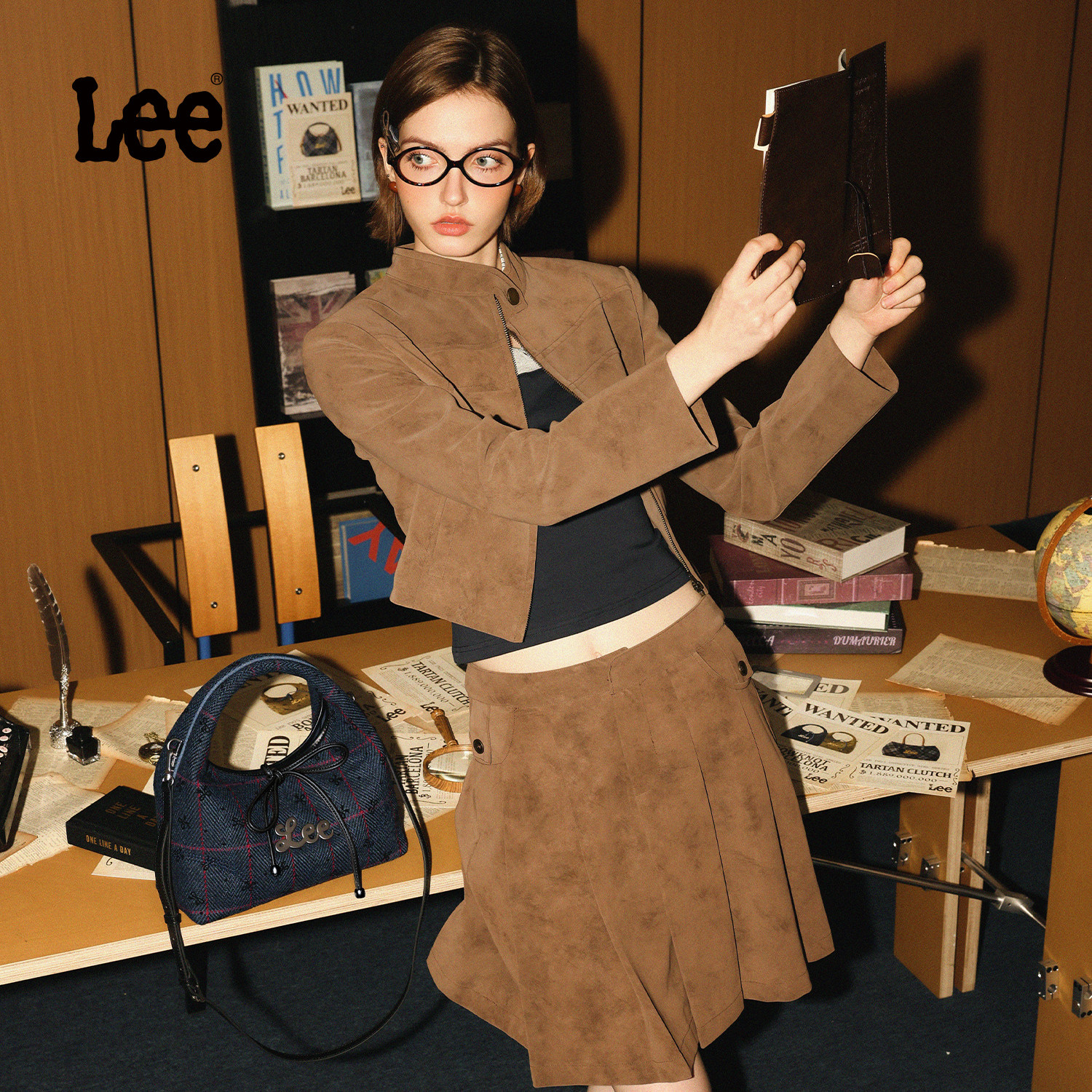 百亿补贴Lee秋冬新款格纹斜挎包女英伦风手提包日常通勤单肩包时尚三角包