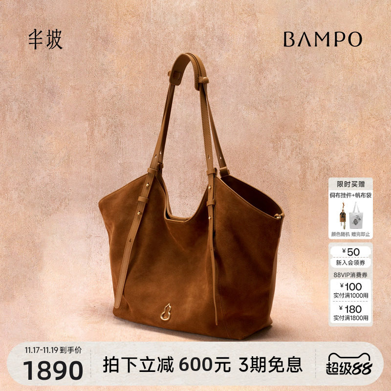 旗舰店BAMPO半坡禾序托特包 头层牛皮单肩包新款通勤大容量麂皮腋下包