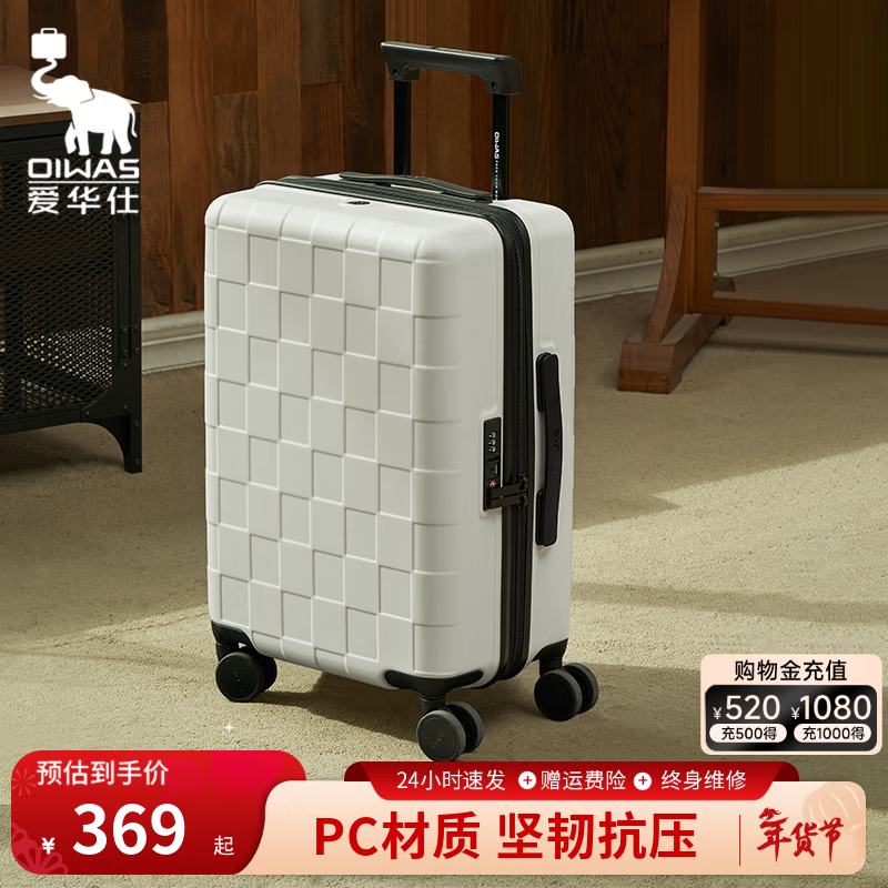旗舰店爱华仕(OIWAS)方糖箱大容量轻便拉杆箱密码登机行李箱旅行高颜值皮箱 白色 【防爆密码锁】 【防刮花】 24英寸 【3-5天中途行】