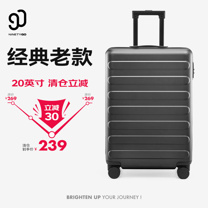 自营90分行李箱20英寸莱茵河经典款 拉杆箱登机旅行箱万向轮密码箱暗夜黑