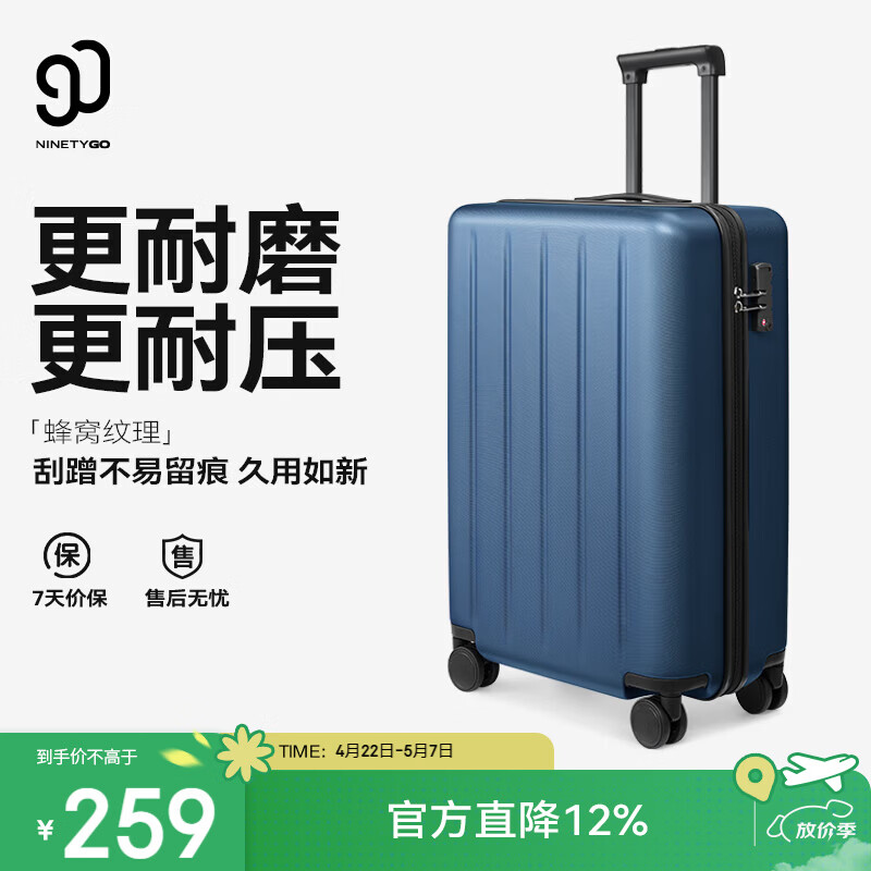 自营90分行李箱20英寸拉杆箱商务可登机旅行箱密码箱子多瑙河蓝色