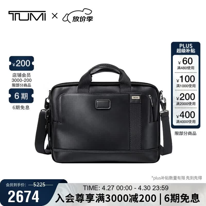 自营途明(TUMI)FREMONT商务公文包经典牛皮革电脑包通勤出差手提包可扩展 黑色