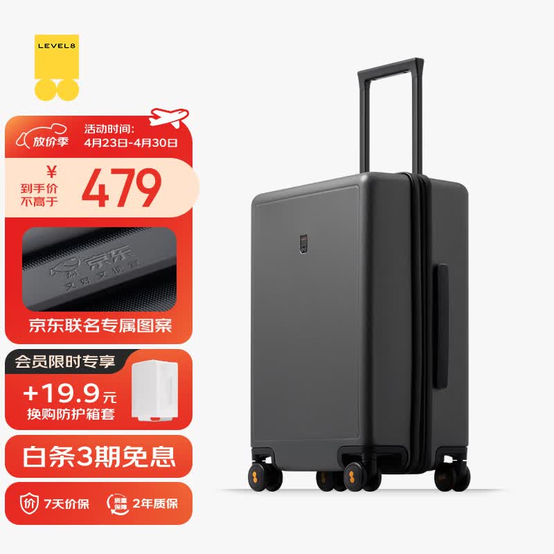 自营地平线8号(LEVEL8)行李箱男女密码托运大容量旅行者PC拉杆箱24英寸灰【京东联名款】