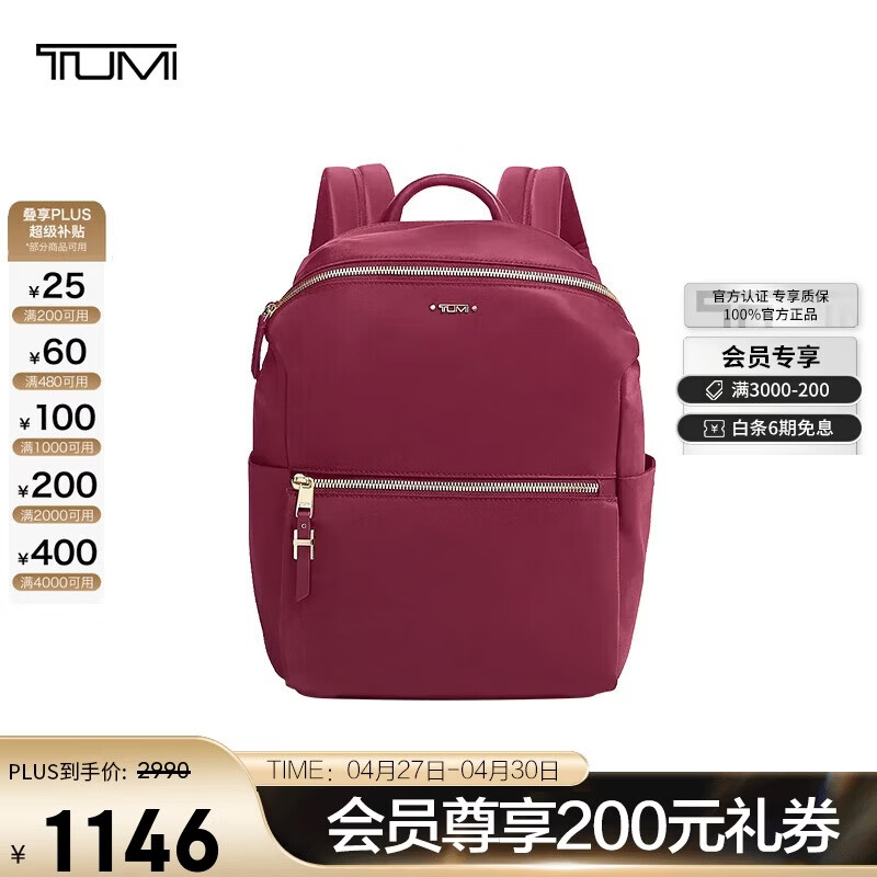 自营途明(TUMI)VOYAGEUR女士通勤百搭时尚双肩包0196449BER草莓色