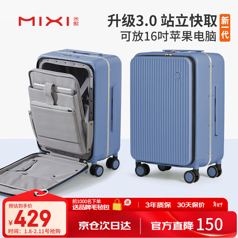 自营米熙米熙前开盖铝框拉杆箱李箱女大容量旅行箱密码箱男20英寸宝石蓝70