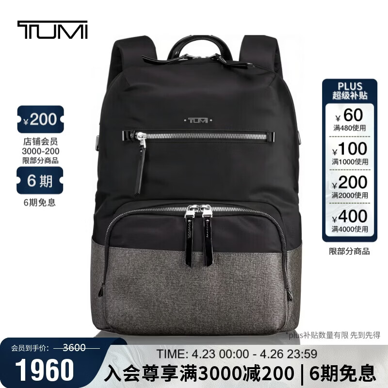 自营途明(TUMI)女士双肩包时尚通勤电脑包04843763DEO 黑色/暗灰色礼物