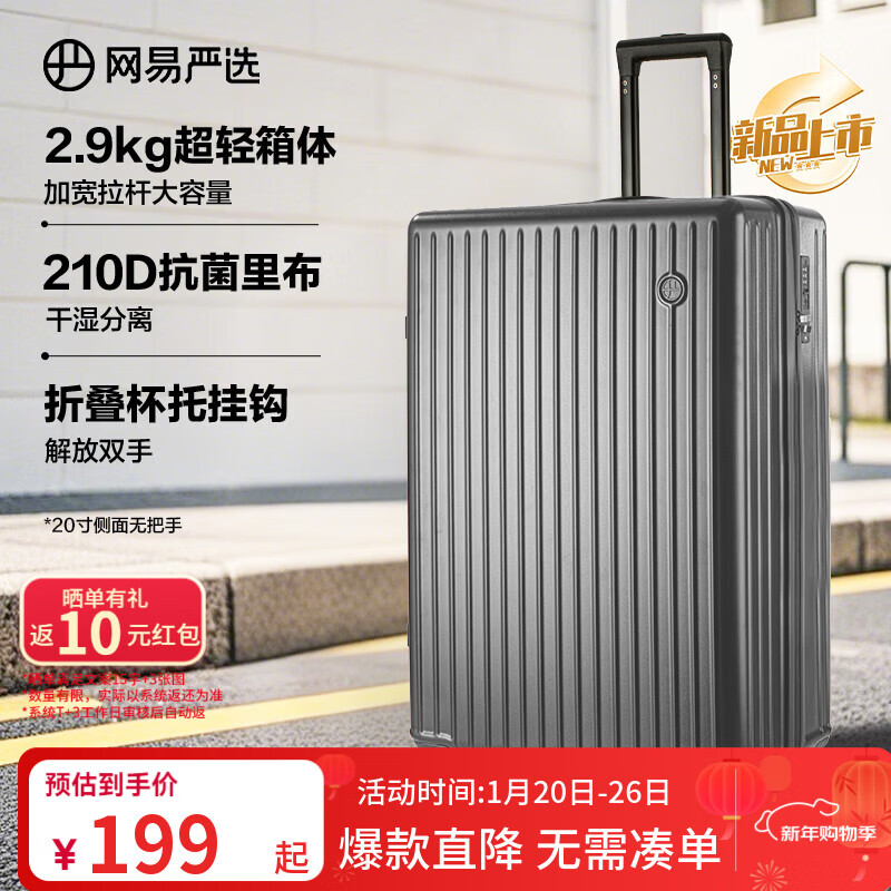 自营网易严选超轻大容量行李箱耐磨出差拉链拉杆箱暗影灰20英寸 【可登机】