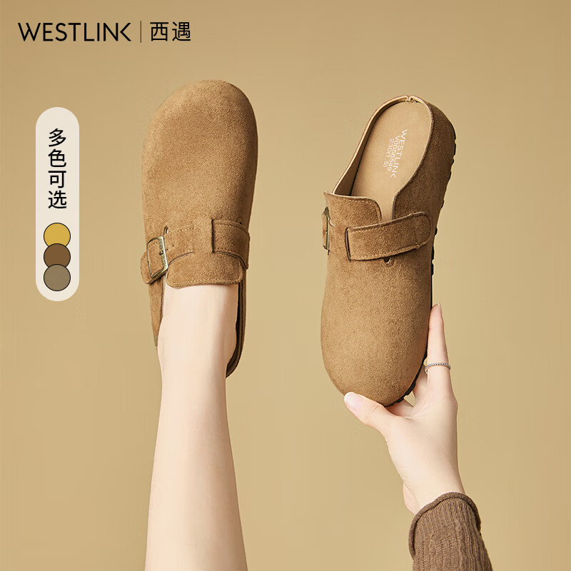 旗舰店西遇(Westlink)勃肯鞋女2025新款春秋百搭博肯女鞋平底包头半拖鞋 深棕色 37 (235)