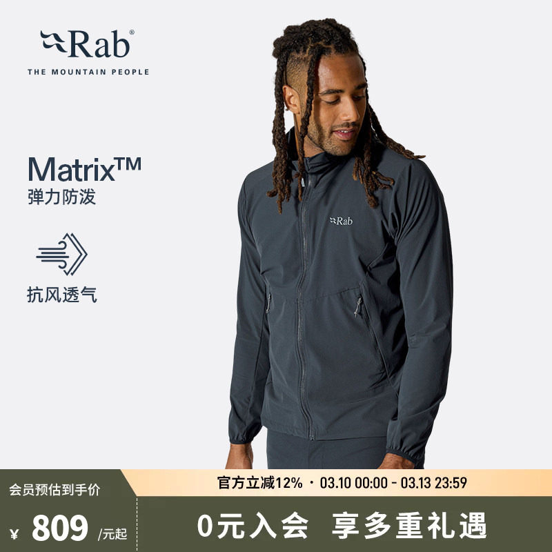 旗舰店RAB睿坡Borealis春秋男士户外运动软壳衣防风徒步登山外套 QWS-76