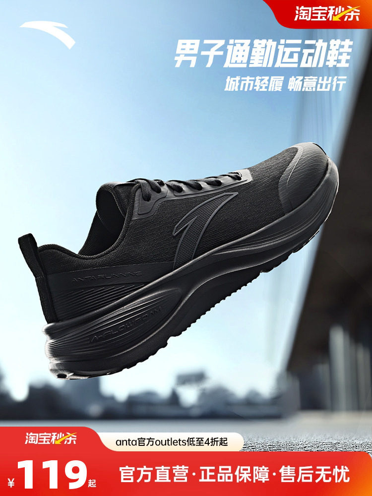 安踏飞悦丨减震通勤黑色跑步鞋男春季新款青少年透气耐磨运动鞋子