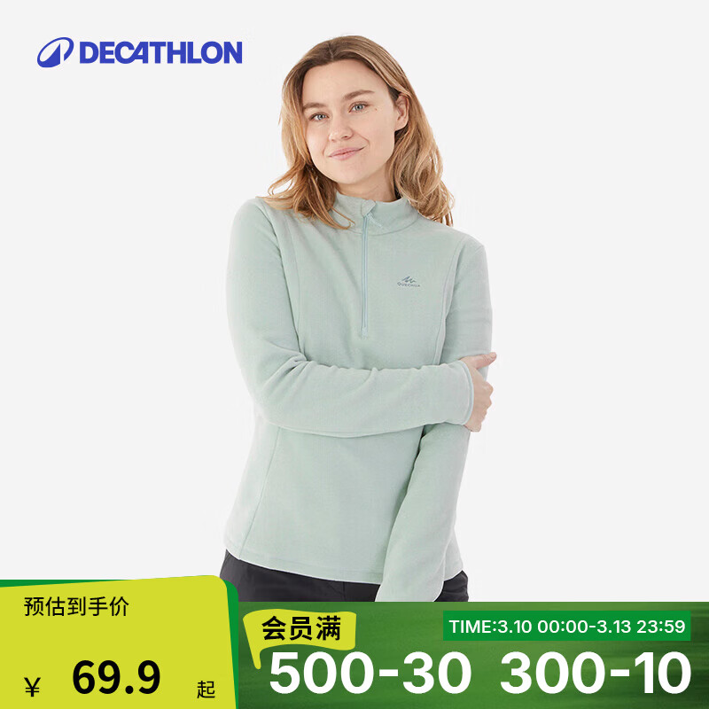 旗舰店迪卡侬(DECATHLON)摇粒绒外套女抓绒衣保暖户外运动加厚秋冬冲锋衣内胆 半拉链-绿色 L