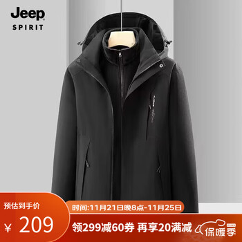 旗舰店JEEP SPIRIT吉普 冲锋外套夹克男三合一两件套登山服防寒舒适登山服 ZT1818 男款黑色 2XL