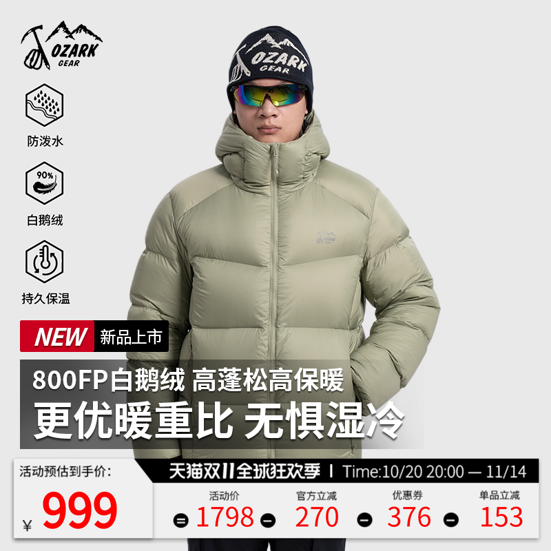 旗舰店Ozark奥索卡25秋冬新品户外羽绒服男款透气舒适鹅绒保暖羽绒服