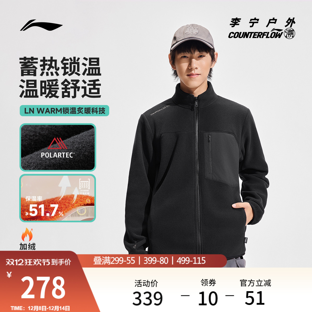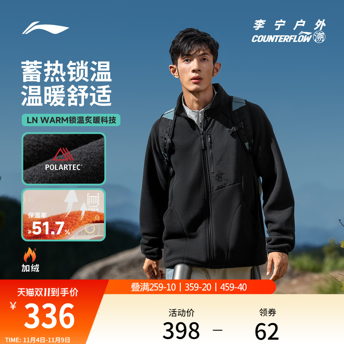 旗舰店李宁户外CF溯|Polartec抓绒衣男士冬季新款加绒保暖摇粒绒外套