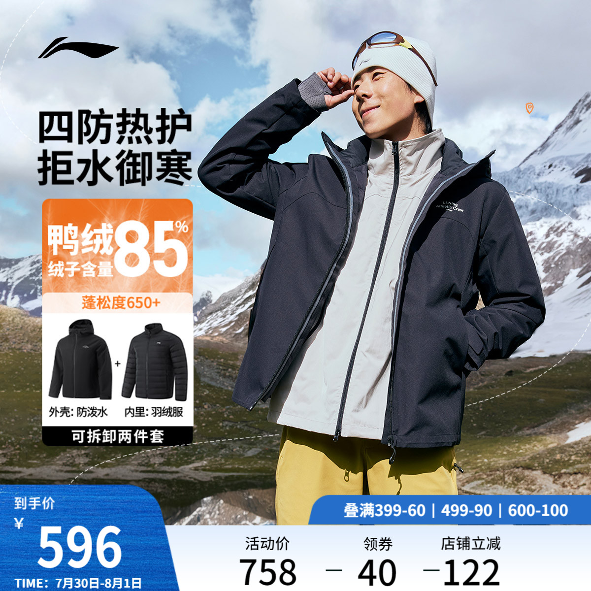 旗舰店李宁三合一运动风衣男夹克健身外套秋冬鸭绒保暖户外厚运动两件套