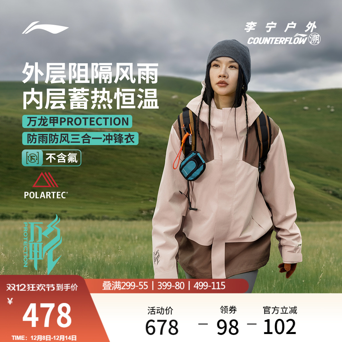 旗舰店李宁户外CF溯丨万龙甲三合一冲锋衣男女同款冬季新款Polartec内胆