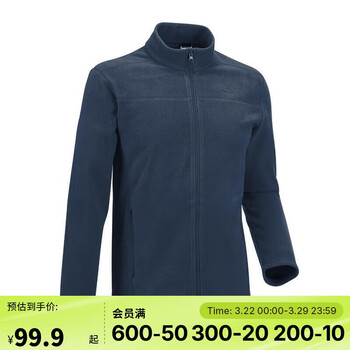 自营迪卡侬男秋冬薄款摇粒绒保暖抓绒上衣全拉链-蓝色L 4924748