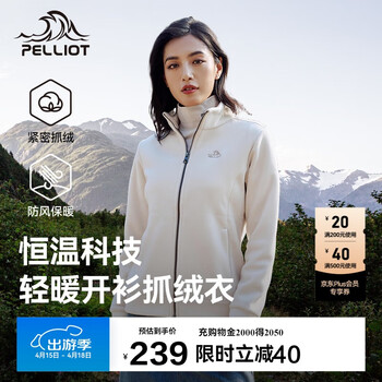 自营伯希和(Pelliot)户外抓绒衣摇粒绒抓绒外套女春季冲锋内胆保暖夹克125110022白L