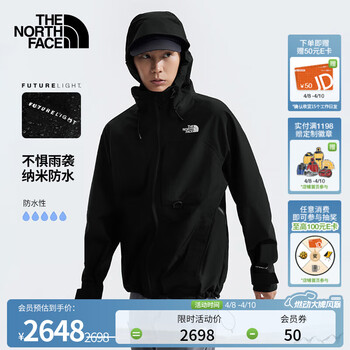 旗舰店北面(The North Face)Stormpeak冲锋衣男FL纳米壳防水户外连帽外套24秋季上新|89ZJ JK3/宇宙黑 L/175