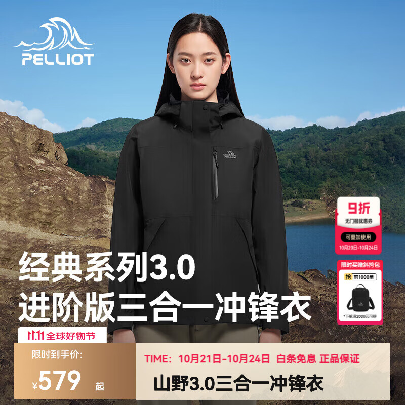 伯希和(Pelliot)【成毅同款】山野2.0伯希和三合一冲锋衣女男可拆卸户外登山外套 【女款】漫暮黑 | 经典进阶版 *配置升级 XL (女126-135斤/男153-169斤)
