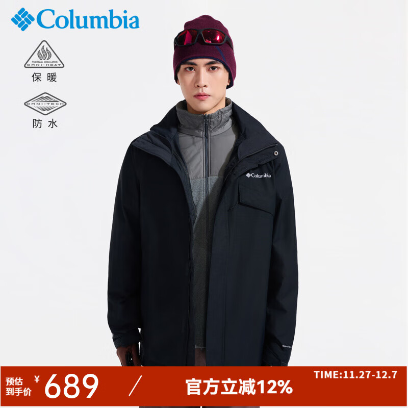 Columbia哥伦比亚秋冬三合一男防水热能保暖舒适抓绒内胆夹克外套WE1273 010 M