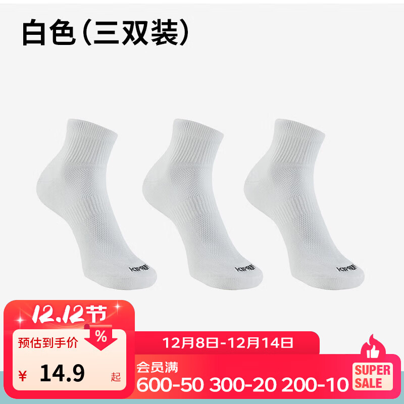 旗舰店迪卡侬(DECATHLON)运动跑步袜男袜四季款吸汗透气速干薄款袜子长款运动袜3双装RUNR 白色(3双装) 39-42(43建议选此项)