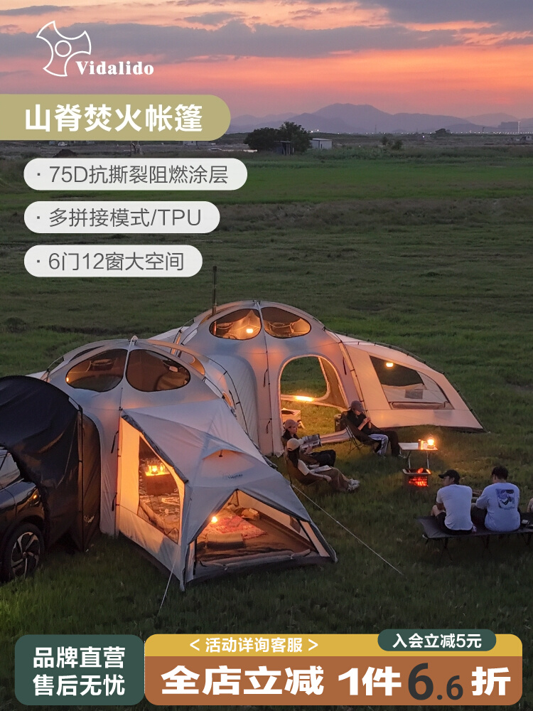 旗舰店维达利多山脊户外露营装备六角穹顶客厅帐篷模块便携野营过夜帐蓬