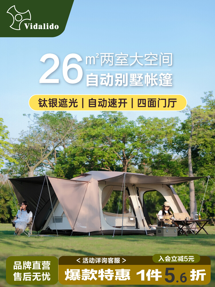 旗舰店维达利多豪华别墅两室一厅屋脊帐蓬户外露营装备过夜自动客厅帐篷