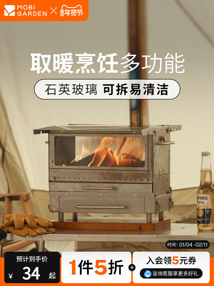 旗舰店牧高笛燎烈两用柴火炉不锈钢户外野营炉具炊具便携式露营取暖炉