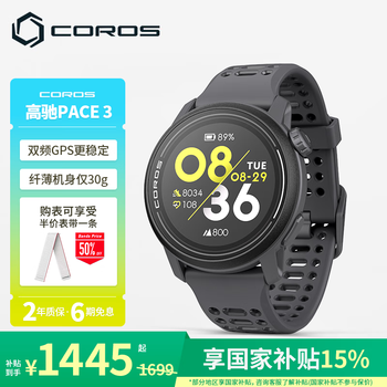 自营高驰(COROS)PACE 3双频全星座运动智能手表跑步骑行越野游泳 黑色硅胶款