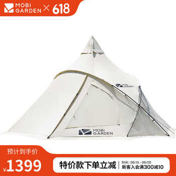 旗舰店牧高笛(MOBIGARDEN) 户外露营超大前厅大空间防风雨棉布帐篷纪元290 帐篷/象牙白