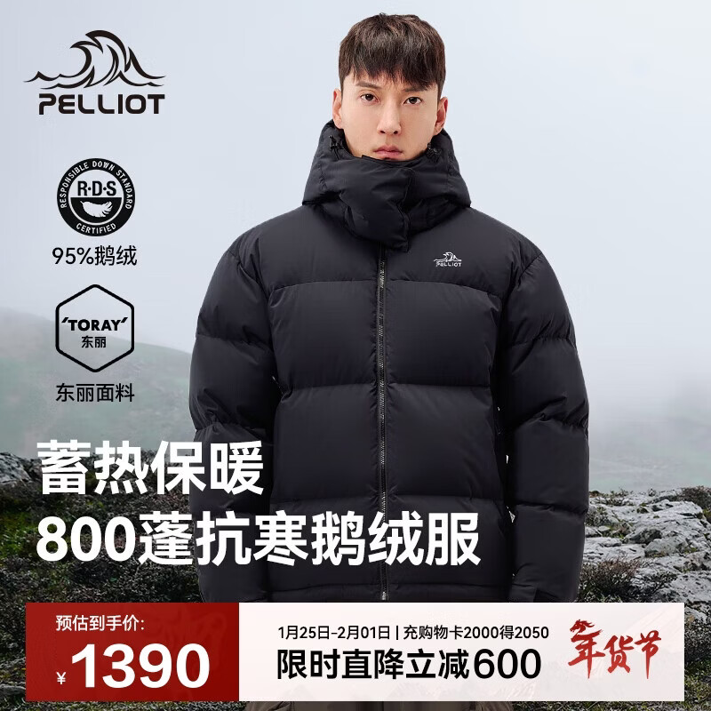 自营伯希和(Pelliot)户外鹅绒羽绒服男女冬季保暖加厚鹅绒服夹克外套114408255黑XL