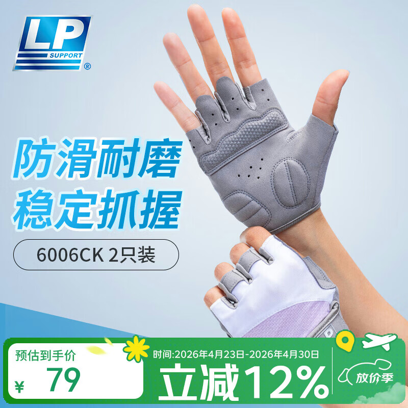 LP运动半指健身手套防滑透气骑行训练薄防起茧白紫女性专用6006CK-M