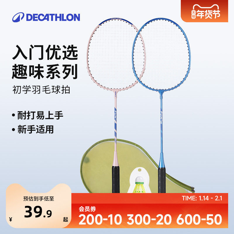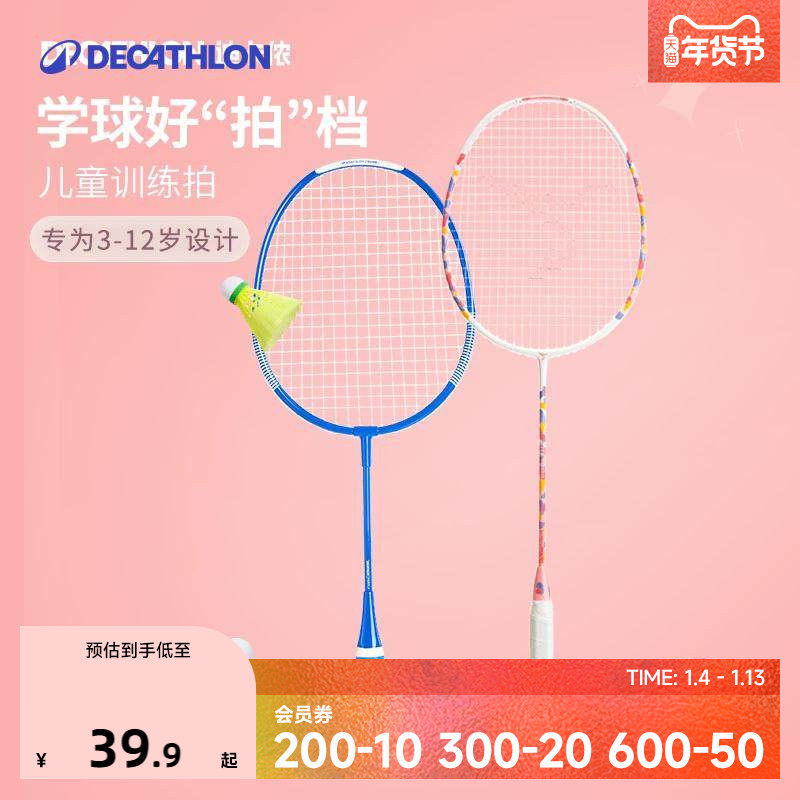 旗舰店迪卡侬羽毛球拍正品成人双拍羽毛球套装儿童小学生亲子户外IVE1