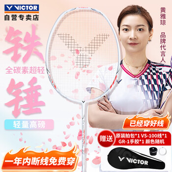自营威克多(VICTOR)胜利羽毛球拍黄雅琼推荐全碳素铁锤单拍TK-HMRL/AD花白色5U已穿线
