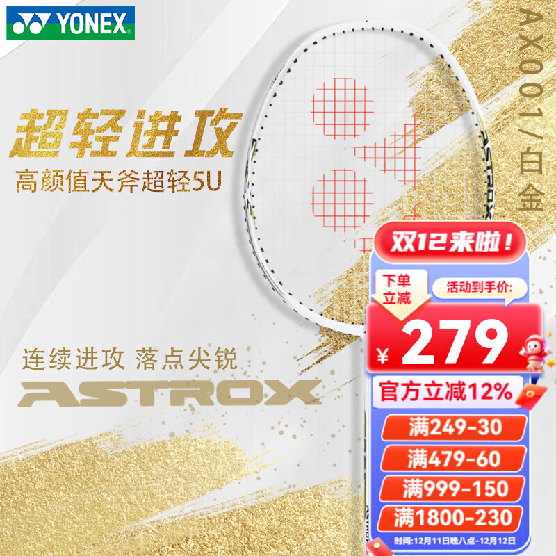 YONEX 尤尼克斯羽毛球拍灰切 yy全碳素银切男女超轻进攻天斧单双拍 天斧AX001 白金色 超轻进攻 5U5 可定制磅数/可换线颜色